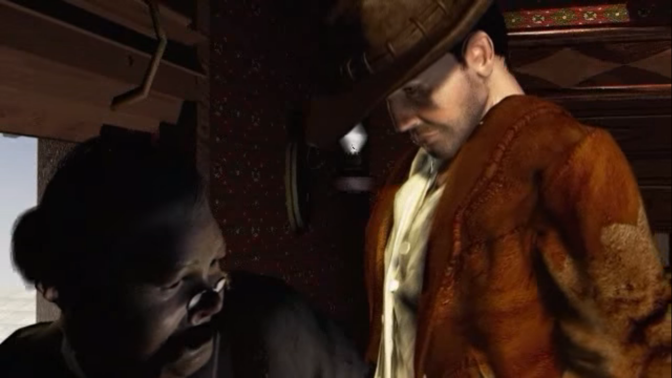 Travelling around the town diligently Cooper warned one of his men that there was trouble afoot. Rather than explain immediately, John instead told them to meet him south of town. The gang member John him that John's horse was at the station and John responded by saying that he may use the passing train as a distraction to get it back.