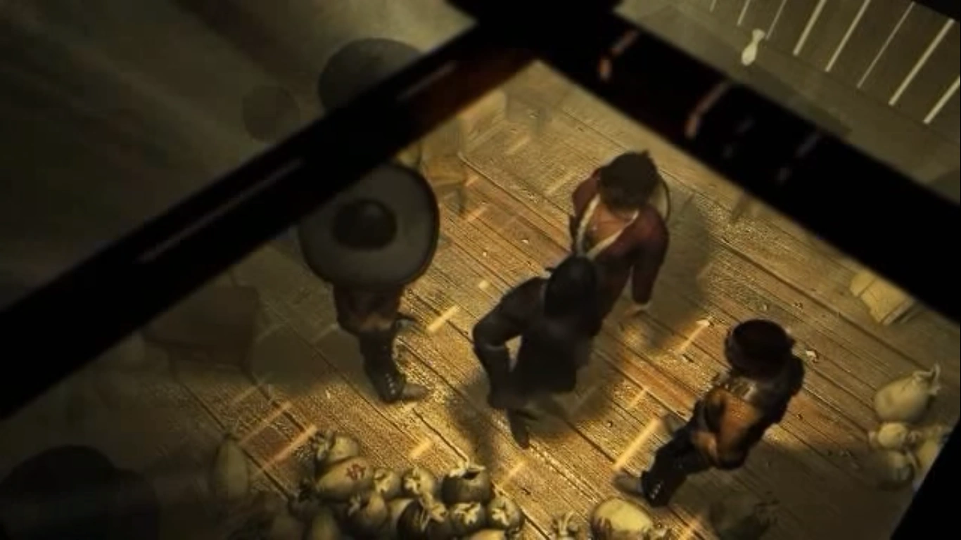 Hearing the shot from the mine, Sanchez immediately rushed out to sea what was happening. Mia reassured him that everything was alright and told him to return back to the mine and wait for her signal. Hearing the horses on their way, Mia threw some peanuts on the ground and hid in a barrel behind the building. The other three gunman arrived and after waking up the one Mia took out; they investigated the area to see what was going on. In the meantime, Mia sent of her trusty pet, Mr. Leone to distract them with the peanuts she threw earlier. The four armed gunmen went to interstage and found it amusing. After getting tired of it, they started to shoot and the monkey ran back to its owner.