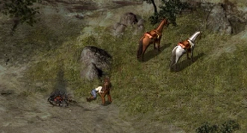 Riding on their way to Doc McCoy, Samuel Williams and John Cooper took a short break and set up a small campfire. After a few hours, John got up and went to wake Sam for they were in Indian Territory. As he slowly got up, he asked Samuel if he was still the best as his skills. To prove that he is still the best explosives expert he knew, he betted John that he could throw a stick of dynamite to the other side of the river without it rolling the water. Just as he said, Sam did just that and with John satisfied, they started walking back to their horses. Suddenly, an Indian fell from the tree, startling the two. Concurring that he was listening in on them, John asked Sam to tie him up until the two were able to get away from their location. With the ease-dropper tied, John his him in the bushes.